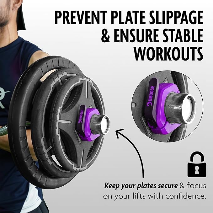 - ππππ-π πππππππ ππππππ π ππ πππππ πππππππππππ: DMoose Quick Release Clamp features a user-friendly design that fits all 2" barbells. Quickly adjust and secure your weights with ease, saving time and keeping your workout momentum strong. Ideal for both home and commercial gyms. Enjoy seamless transitions between sets with these easy-to-use weight clamps, designed for quick and efficient adjustments.
