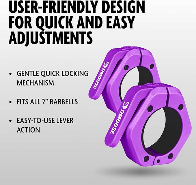 - ππππ-π πππππππ ππππππ π ππ πππππ πππππππππππ: DMoose Quick Release Clamp features a user-friendly design that fits all 2" barbells. Quickly adjust and secure your weights with ease, saving time and keeping your workout momentum strong. Ideal for both home and commercial gyms. Enjoy seamless transitions between sets with these easy-to-use weight clamps, designed for quick and efficient adjustments.