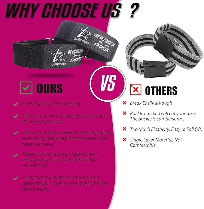 - Ultra Comfort and Quality: Crafted from the highest quality elastic material, ideal for occlusion training. These bands restrict proper blood flow without limiting movement or muscle contractions.