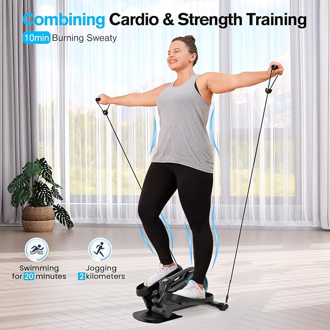 - 【Resistance Bands for Full-Body Exercise】The under desk elliptical with resistance bands for combined aerobic and anaerobic full-body exercise. Enhance strength and endurance in arms, back, shoulders, and chest, improving overall fitness levels.