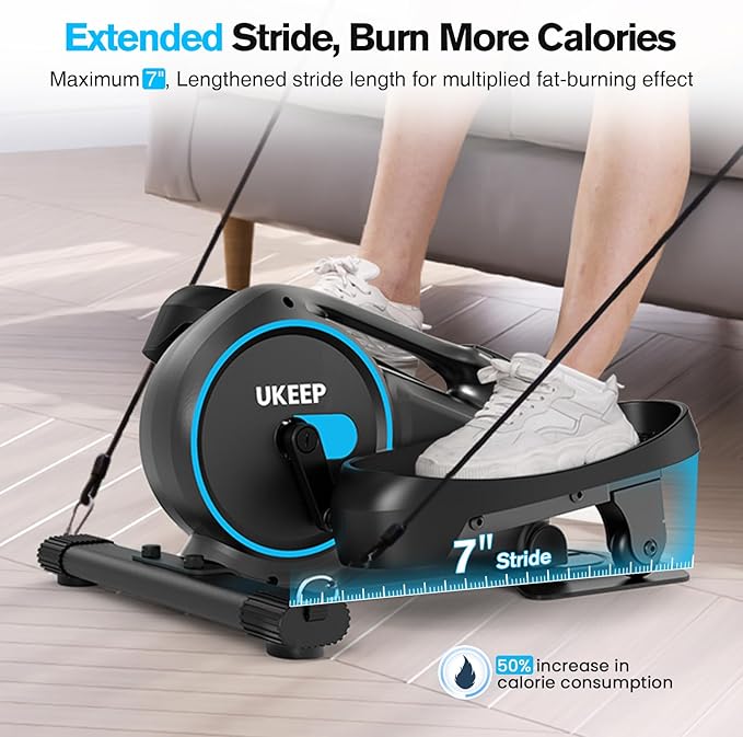 - 【7-Inch Stride Length】The under desk elliptical machine has a maximum step length of 7 inches, which is effective in boosting your calorie burning rate by 50%. It provides a better lower body workout whether you are working or relaxing at your desk.