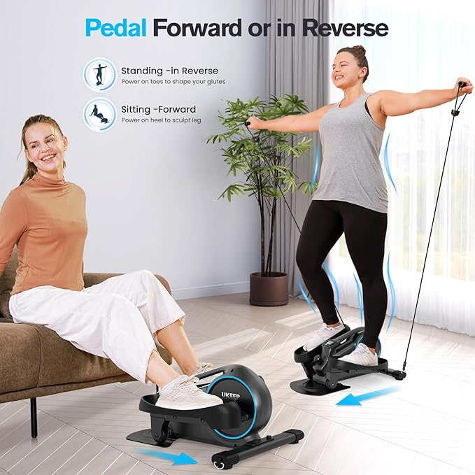 - 【Versatile Use】This ellipse leg exerciser as seen on TV is compact and lightweight, making it perfect for versatile use. Whether you prefer sitting or standing, you can pedal forward or backward to target different muscles. Use the included resistance bands to work out your arms, back, shoulders, and chest.
