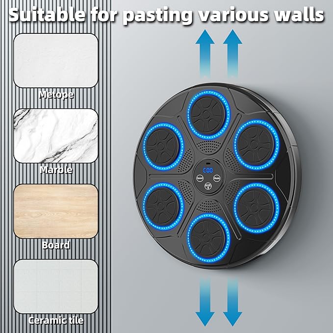 - 【✔️Easy to install】Simple installation process, only a few minutes to complete with the included wall-mounted. Use double-sided tape and Velcro to fix the Bluetooth boxing machine on the wall, and you can have a home boxing machine without drilling holes in the wall.