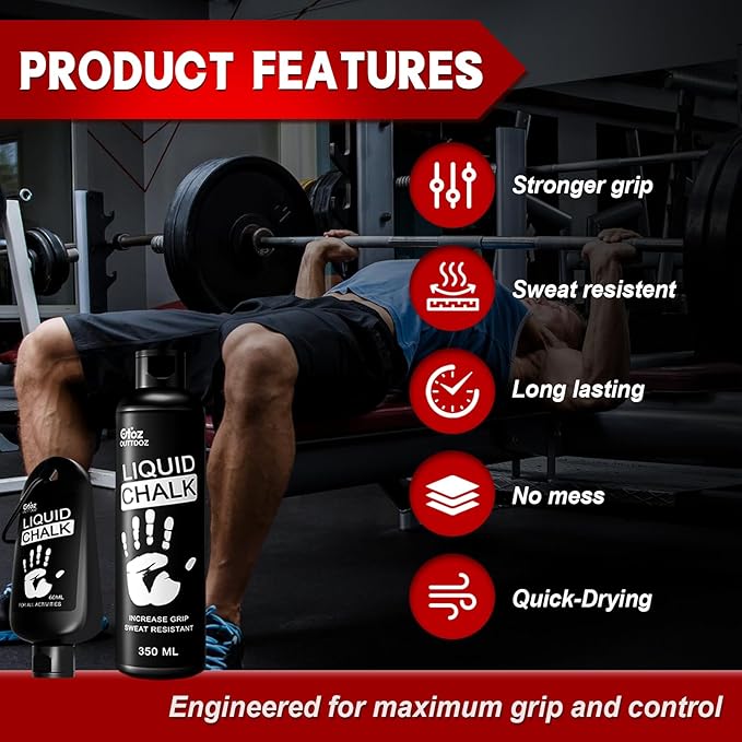 - Mess-Free & Equipment Safe - No dust, no mess. This liquid gym chalk won’t stain clothes or create airborne dust—perfect for clean, breathable workouts.