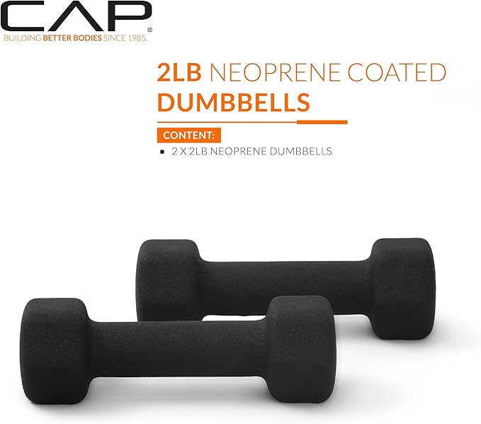 - INCLUDES – TWO 2 lb neoprene coated dumbbells in Black color