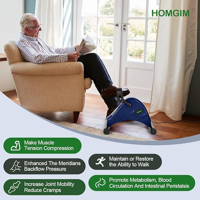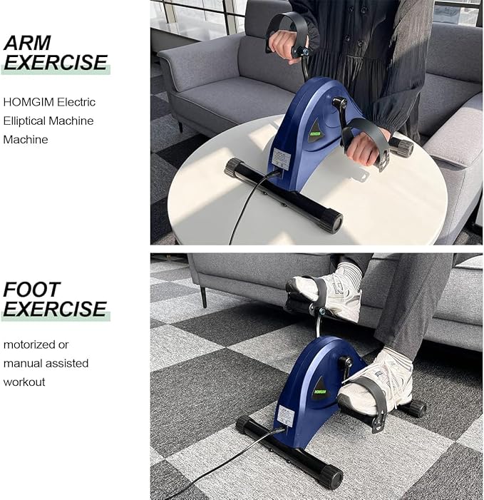 - 💪【SMALL & QUIET UNDER DESK ELLIPTICAL MACHINE】HOMGIM Electric Mini Exercise Bike is used for arms and legs cycling exercises at the office or at home to increase circulation and relieve tension, the pedal motion is smooth and quiet, you can do exercise while you are on phone, watching tv, working, or playing video games