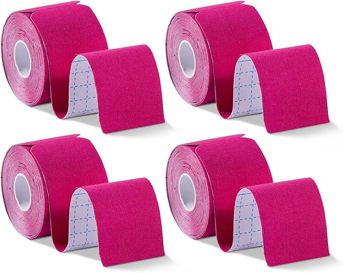 - Packaging Includes: 4 rolls pre cut kinesiology tape, used by physical therapists and sports medicine practitioners around the world. Sports tape is suitable for all kinds of sports practice, whether it is running, swimming, gym exercise, tennis, football, also applicable in Olympic Games by athletes. Can help you effectively prevent muscle strain, etc.