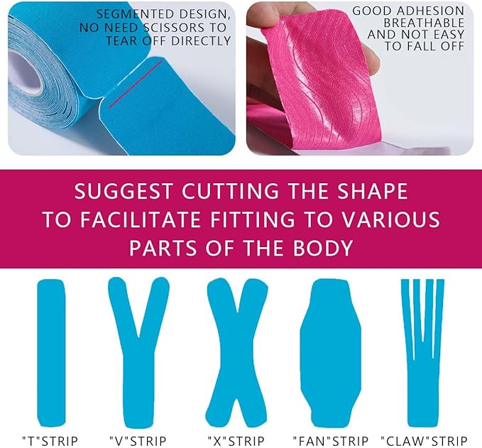 - Water Ripple Design: According to ergonomic design, the blood and lymph under the skin can circulate smoothly. The tape products are hypoallergenic, latex-free, natural rubber-free, lightweight, breathable, comfortable, and easy to use and comfortable to wear. This adhesive tape is safe to use on sensitive skin for therapeutic and medical applications.