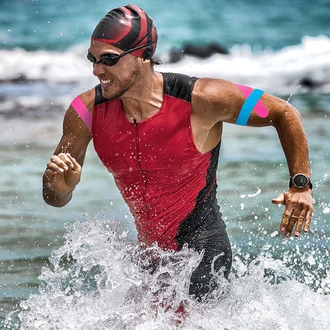 - Waterproof and hypoallergenic, our tape will stay on knees, elbows, and feet through the toughest workouts for days at a time, without irritating sensitive skin. Designed for use by professional athletes, as well as for home first aid, this synthetic Kinesiology tape is perfect for muscle injuries and recovery.