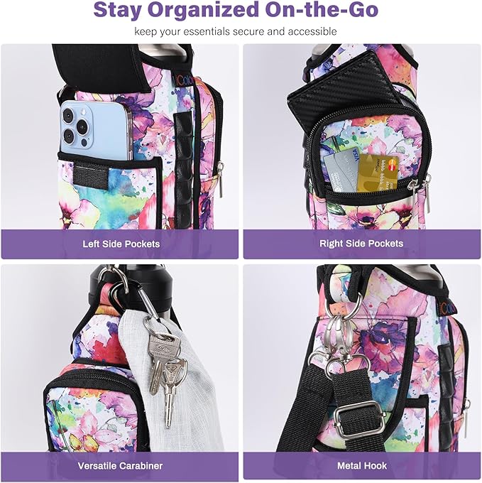 - Universal Fit & Practical: Designed to fit most standard water bottles up to 3.9" diameter, from 18oz to 40oz(500ml ~1300ml),Compatible Hydro Flask / YETI,the Phone Pocket Fits Large Phones as iPhone 15 /16 Pro Max/Samsung Ultra,Crafted from soft neoprene,sturdy yet lightweight,this gym water bottle holder bag offers a reliable solution for gym-goers seeking convenience and functionality.