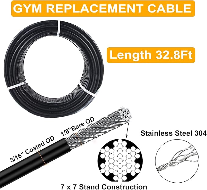 - 【Wide Applications】The replacement cable can be widely used in home gym, indoor or outdoor sports.Suitable for training triceps, biceps, back muscles, deltoids with pulley systems. You can cut it to the length you need as a replacement of pulley cable.