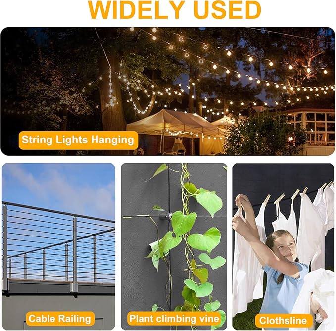 - 【Qualitative Materials】Our wire rope is made of 304 stainless steel,construction: 7 x 7, it has a rated pulling strength of 1460lbs and 5mm black PVC coated.