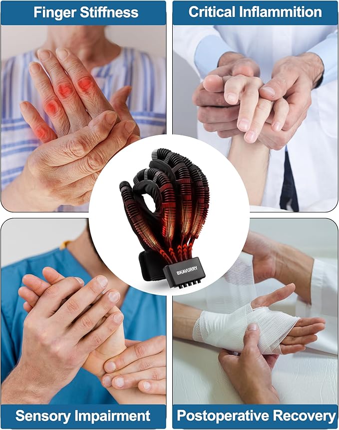 - 【Rehabilitation Robot Glove】This hand rehabilitation Equipment has a significant improvement effect on muscle weakness, finger stiffness and pain.It is suitable for hand training for patients with stroke, hemiplegia, cerebral palsy, nerve damage, etc.The new heating function can promote blood circulation, enhance muscle tension and improve training effect.