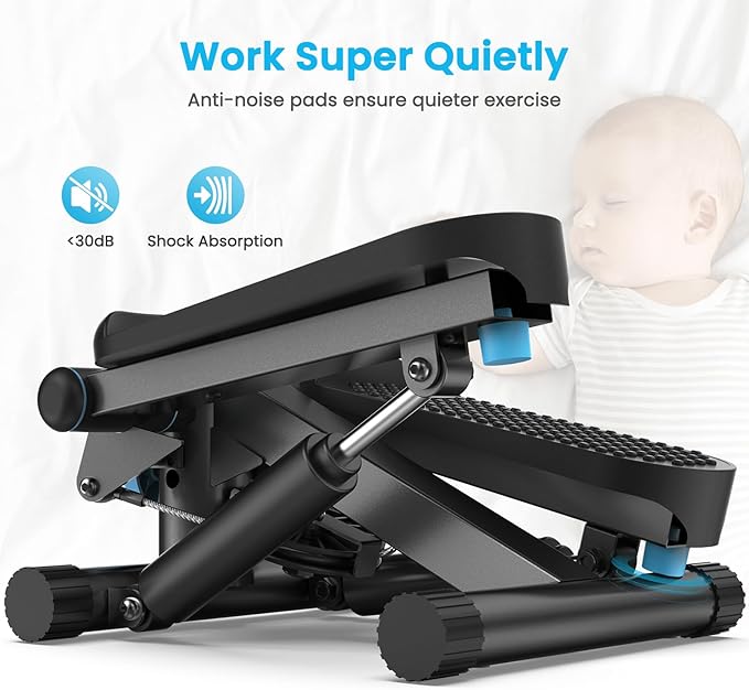 - 【QUIET & SMOOTH, NO SQUEAK 】The sound of home workout equipment < 30dB, there is a silent silicone cushioning pad under the stepper. High-quality Dual Hydraulics can be used 16W+ times after the tests.