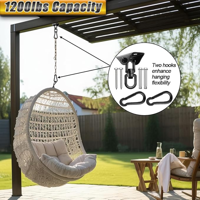 Hammock Hanging Kit, Hanging Chair Hardware 360° Swivel 1200 lb Capacity, Porch Swing Mounting Hardware, Hammock Chair Hanging Kit for Boxing Bag, Tree Gym (Black)
