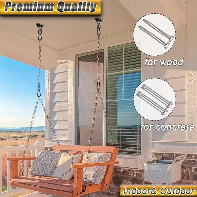 - Premium 304 Stainless Steel: Built with high-quality SUS 304 stainless steel, our swing hardware is rust-resistant and durable. This heavy duty construction ensures longevity and reliability, making it ideal for both indoor and outdoor use, including porch swing hardware and hammock hanging hardware outdoor. Perfect for swing hooks heavy duty, porch swing chain kits, and outdoor hammock hardware hanging kits.