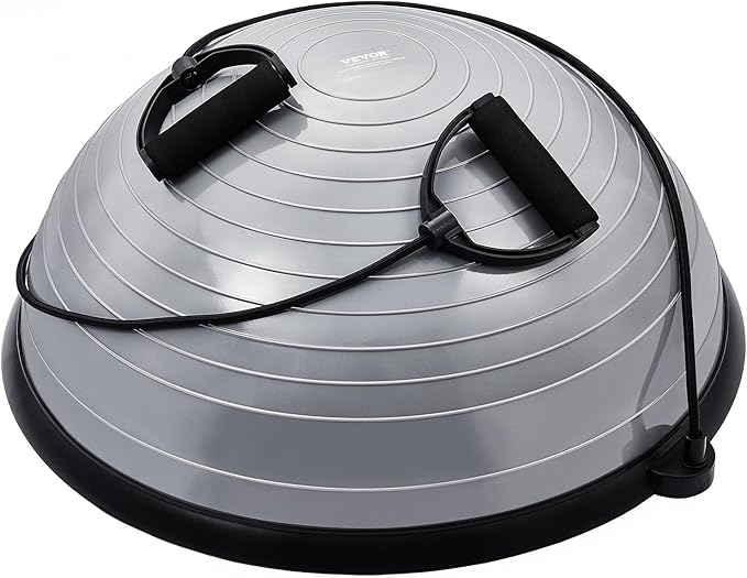 VEVOR Half Exercise Ball Trainer, 23/26 inch Balance Ball Trainer, 1500lbs Capacity Stability Ball, Yoga Ball with Resistance Bands & Foot Pump, Strength Fitness Ball for Home Gym Full Body Workout Black