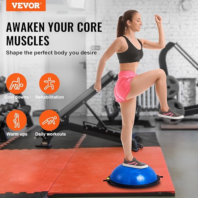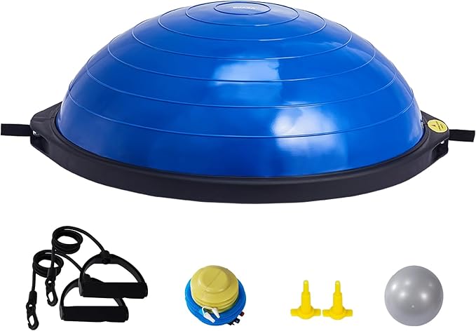 - Multi-functional Exercise: The half exercise ball trainer, unlike any other fitness equipment, offers various strength training methods targeting every muscle in your body, supporting multiple unique stretching poses, making it a perfect complement to your home gym and workout routine. With infinite exercise options, from stepping to plank, lunge to push-up, it provides endless possibilities for full-body workouts.
