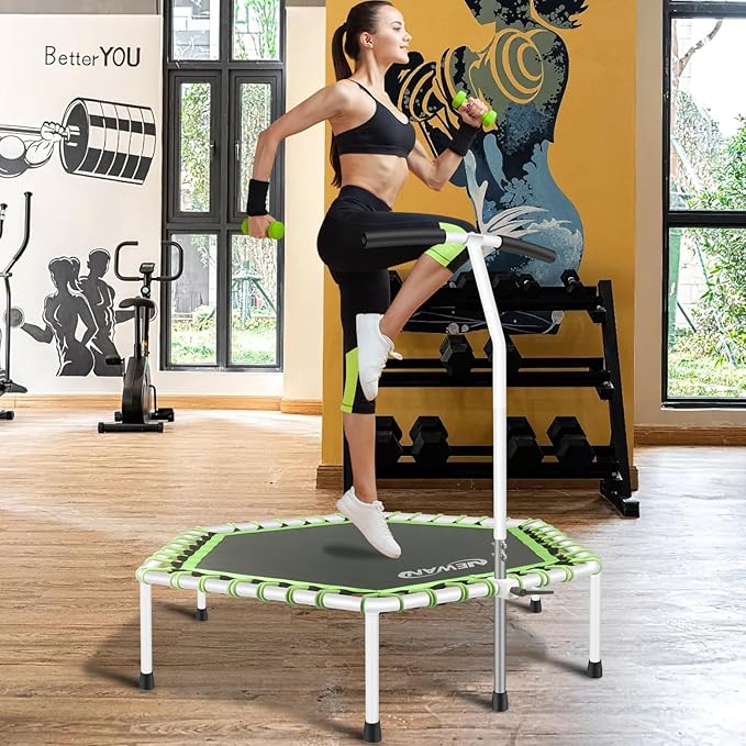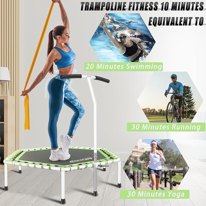 Newan 48'' Fitness Trampoline with Adjustable Handle Bar, Silent Trampoline Bungee Rebounder Jumping Cardio Trainer Workout for Adults - Max Limit 330 lbs