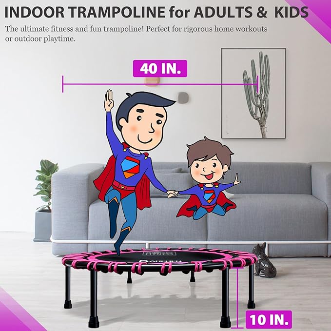 - 💪【Multifunction】- DARCHEN indoor trampoline is also a perfect equipment for losing weight.10 Minutes bounce exercise equals 1-hour jogging, 30 minutes cycling or 20 minutes swimming.