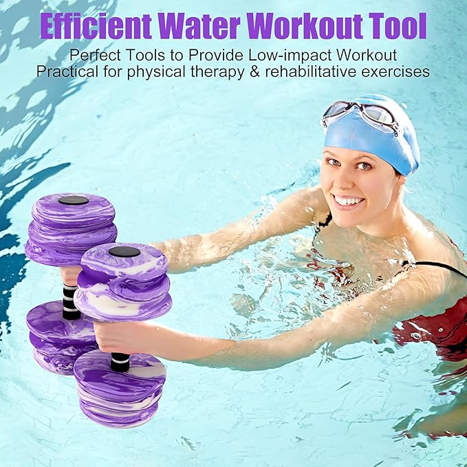 - Perfect Aquatic Fitness Tool - The aquatic dumbbells for water aerobics is designed in Cool Colors & Ergonomic Design. EVA foam cushion padded around the hand bar, offering a more comfortable & anti-slip grip. Large diameter makes it more easier to use. Buckle Design is for freely assemble .