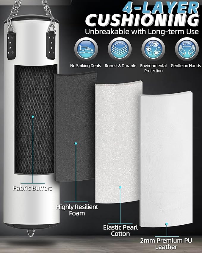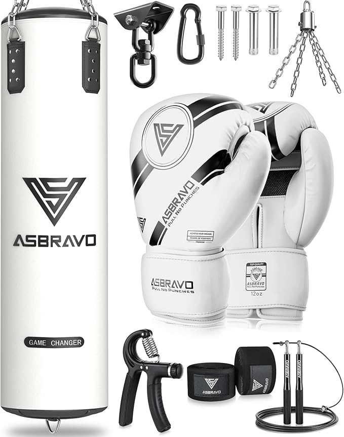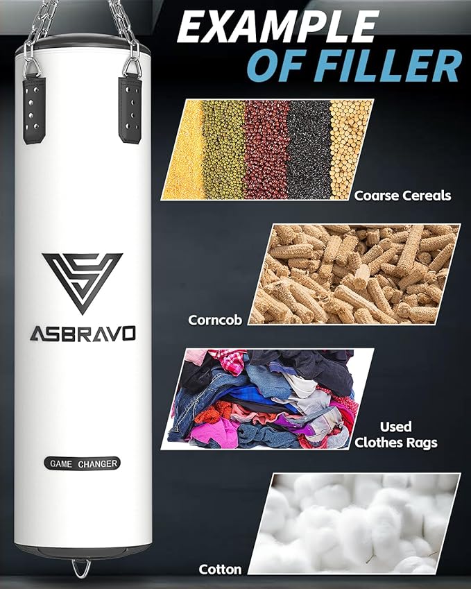 - 【PU Leather Material】ASBRAVO punching bag is made of high grade PU Leather, ensuring sturdiness and the ability to take on intense punches and kicks. The 4ft punching bag makes an ideal training companion for everyone