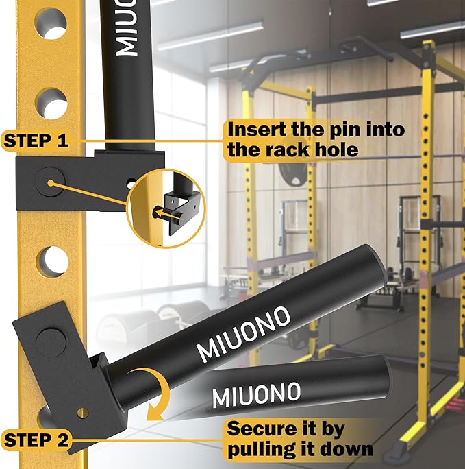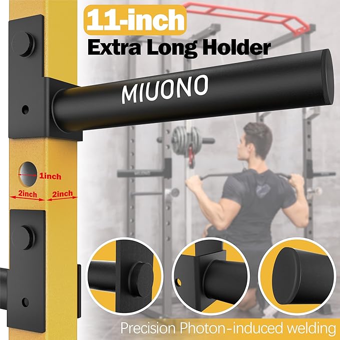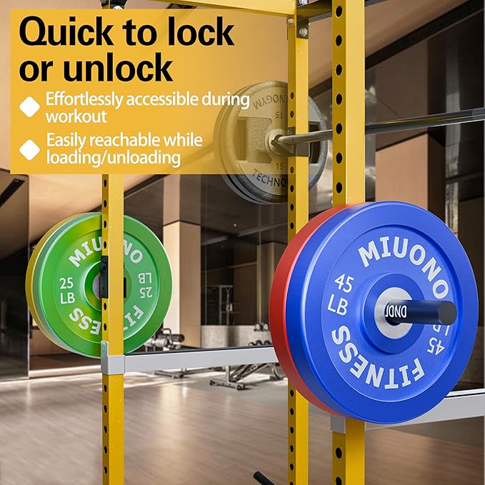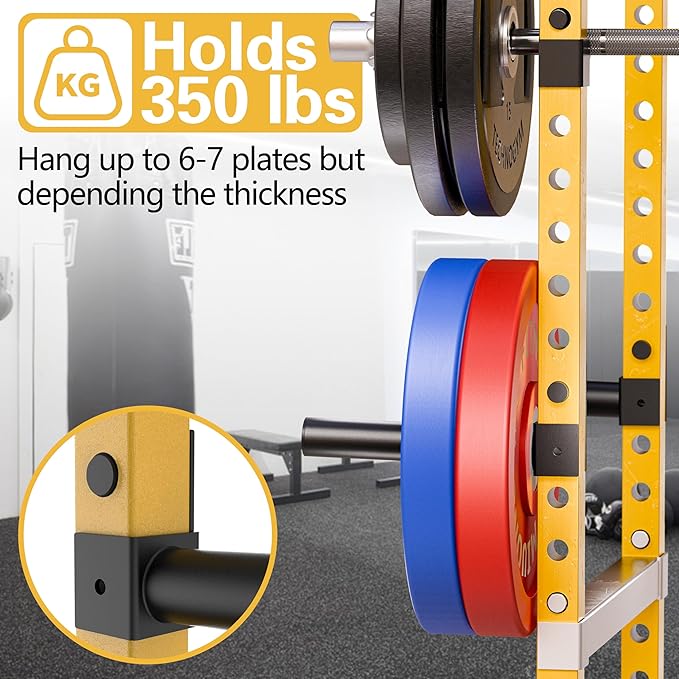 - Effortless to Use: Slide the pin into the power rack’s hole and swing it down to lock securely in place. This simple, quick-release design of weight plate holder makes loading and unloading weight plates quick and easy. The adjustable height adds flexibility to accommodate all your workout needs