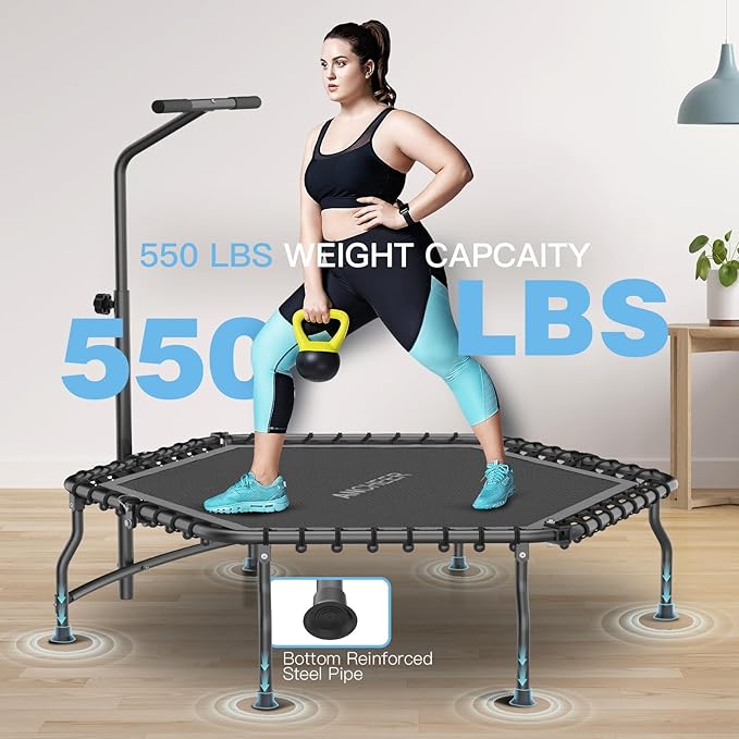 ANCHEER 50" Rebounder Trampoline for Adults With Bar, 550 LBS Mini Trampoline Quiet Exercise Bungee Jumping Cardio Trainer Workout
