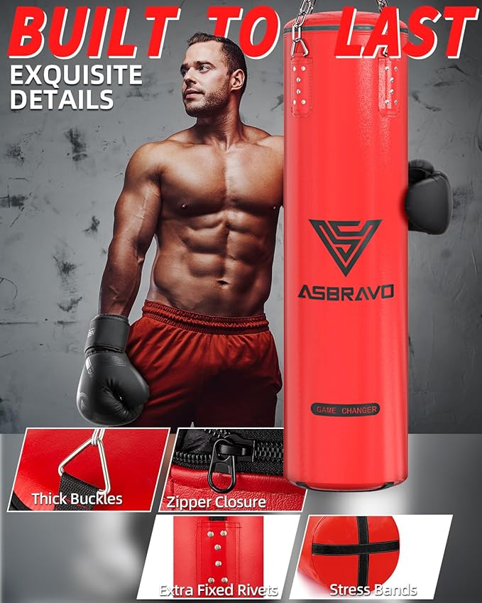Punching Bag for Adults, 4ft PU Heavy Boxing Bag Set 12OZ Gloves for MMA Muay Thai Kickboxing Training Home Gym, Martial Art (Unfilled)
