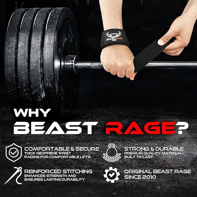 - ✍GRIP ASSISTANCE TO RAISE HEAVIER WEIGHT – Try them risk-free today and take no excuses as BEAST RAGE weight lifting straps offer neoprene padding to protect your wrists and hands when you deadlift or perform a heavy back day. Strong, lengthy "no slip" straps improve any workout lifts.