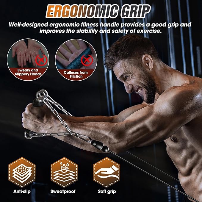 - Outstanding Gym Cable Handle: Selected quality TPE overmolded wrapped alloy core to create both soft and tough lat pulldown handle, which not only ensures the safety of use, but also enhances the comfort of grip. Stainless steel parts are finely polished, corrosion-resistant and long-lasting