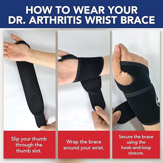 Dr. Arthritis Wrist Brace, Adjustable Wrist Wraps & Hand Brace Compression, Doctor-Developed Wrist Brace for Carpal Tunnel, Tendonitis, Injuries & More, Easy to Wear, Fits Both Hands (Single)
