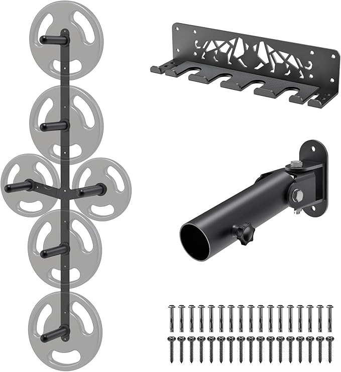 - EASY TO INSTALL AND VERSATILE: Our rack is easy to install and remove. The package includes all mounting hardware, including 18 expansion screws for mounting on concrete walls and 18 wood screws. Suitable for both garage gyms and home gyms, this versatile set is the perfect addition to any strength training routine. Upgrade your gym experience today and reap the benefits of a well-organized, efficient workout space