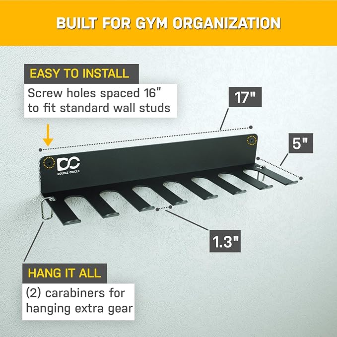 - [ Built For Gym Organization ] Double Circle gym organizer has 8 prongs, spaced perfectly for CrossFit and weight lifting gear, enhancing your home or commercial gym's neatness.