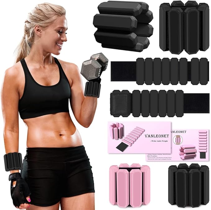 Vanleonet Wrist Ankle Weights for Women,Adjustable Wearable Strong Arm & Leg Weights Set of 2(1Lbs Each),Comfortable and Breathable for Yoga, Barre, Pilates, Swimming, Cardio, Aerobics, Gym