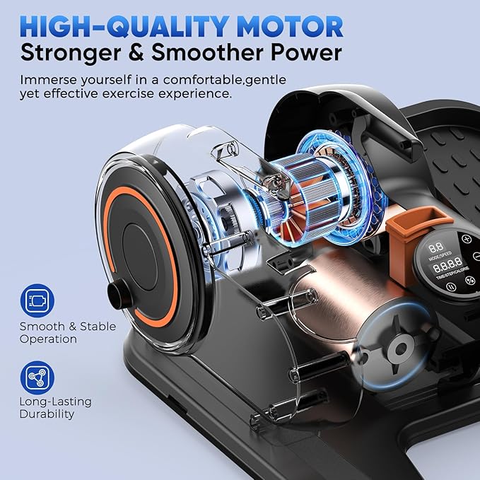 - 【Low-Impact& Zero Pressure】Our under desk elliptical features a superior shock absorption system, significantly reducing the impact on your knees and ankles, making it idea for daily exercise. Unlike a regular treadmill, it minimizes impact, putting zero pressure on joints, especially beneficial for seniors. It improves blood circulation, strengthens leg muscles and enhances mobility. Choose our foot exerciser for a joyful and smoother workout that reduces muscle strain and lowers injury risk