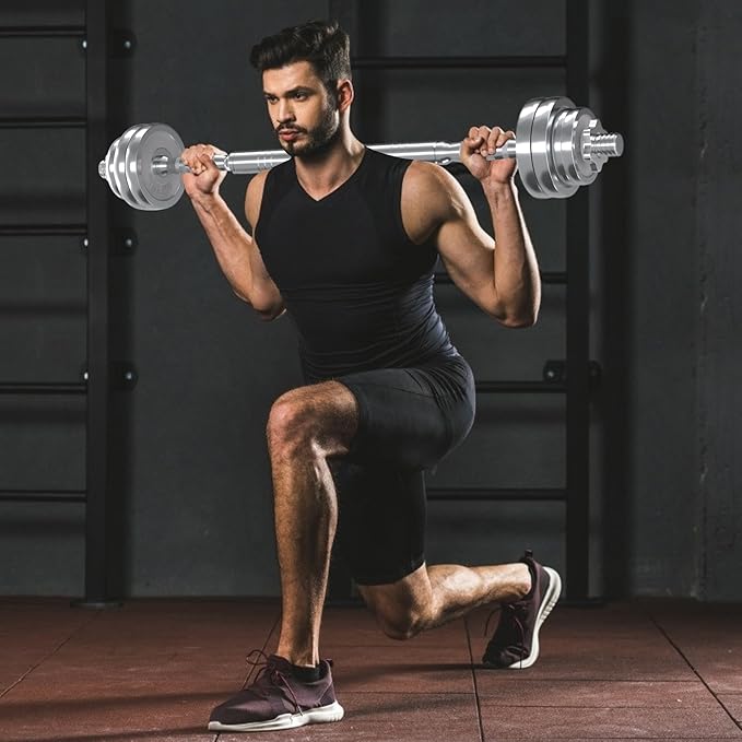 - 【2-IN-1 Design】- The fitness dumbbell set comes with a connecting rod to convert to a barbell easily within seconds to meet the needs of your maximum body workouts. Save time and money when exercising at home or in the office.