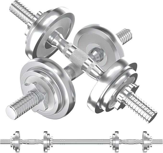 VIVITORY Fitness Dumbbells Set, Adjustable Weight Sets up to 11/22/44/66/110 lbs, with Metal Connecting Rod Used As Barbell, Chromed Weights, Hardcover Gift Box, Home Gym Work Out Training Equipment