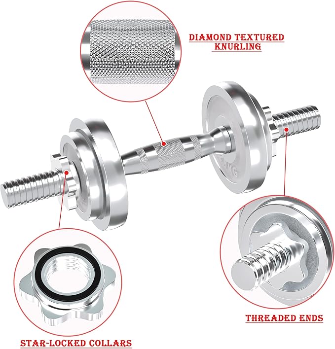 - 【More Stable】- This dumbbell is made of solid pure iron, and the surface adopts a 7-layer electroplating process, don’t worry about rusting. The connector handle is knurled for better grip and increased safety during exercises. Compatible with 1-inch spin-lock dumbbells.