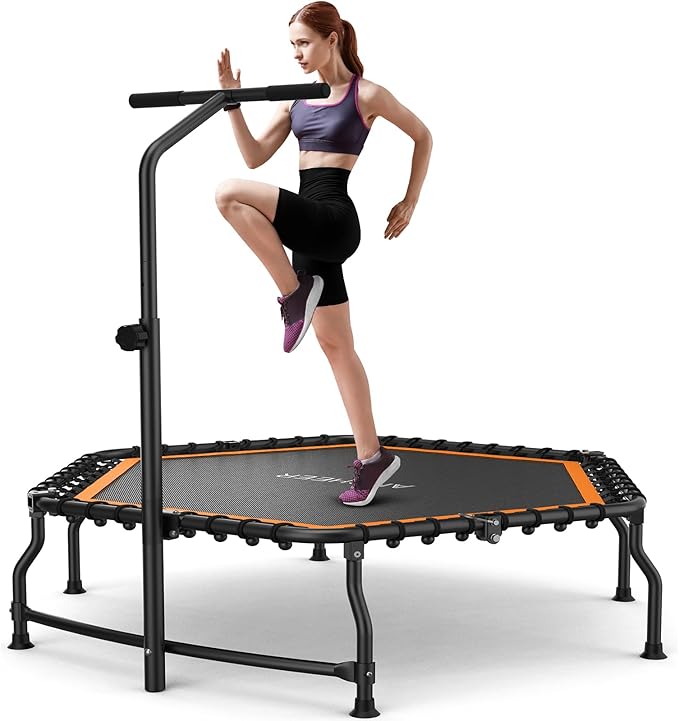 ANCHEER 50" Rebounder Trampoline for Adults- 2025 Foldable Mini Trampoline with Bar- Exercise Trampoline for Adults, Max Load 450lbs/550lbs, for Indoor/Garden Workout