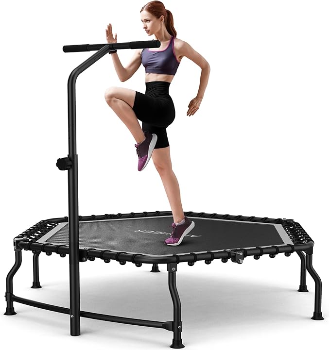 ANCHEER 50" Rebounder Trampoline for Adults- 2025 Foldable Mini Trampoline with Bar- Exercise Trampoline for Adults, Max Load 450lbs/550lbs, for Indoor/Garden Workout