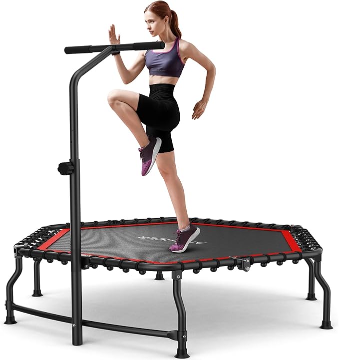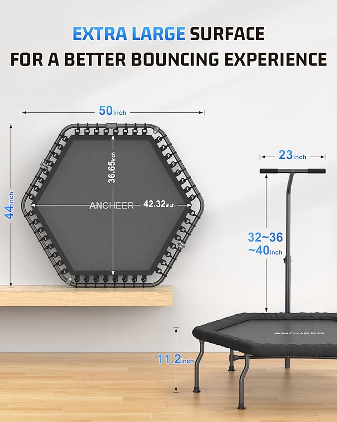 ANCHEER 50" Rebounder Trampoline for Adults- 2025 Foldable Mini Trampoline with Bar- Exercise Trampoline for Adults, Max Load 450lbs/550lbs, for Indoor/Garden Workout