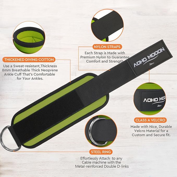 Comfortable Adjustable Padded Ankle Wrist Cuffs Neoprene Padded Straps D-Ring Glute Kickback for Cable Machine, Ideal for Glutes Exercises