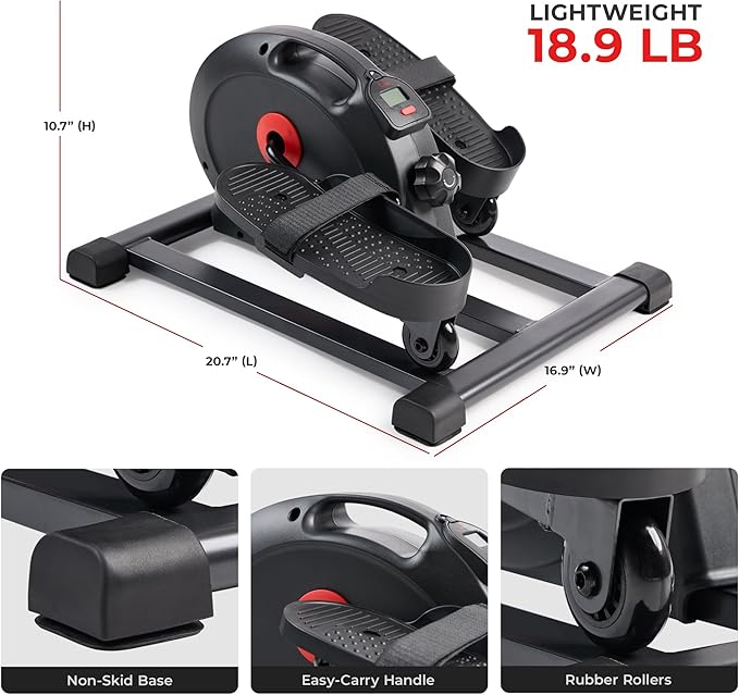 - 【COMPACT, PORTABLE & EASY STORAGE 】 With its lightweight construction and convenient carry handle, moving and storing this mini elliptical is a breeze. Easily store it under a bed, desk, or in a closet, ensuring it won't take up valuable space while remaining readily accessible whenever you need it.