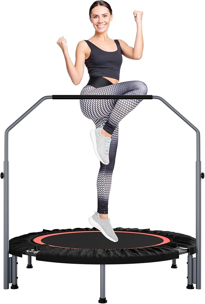 40"/48" Foldable Mini Fitness Rebounder with Adjustable Foam Handle, Max Load 330/440 lbs, Indoor Cardio Exercise Rebounder for Adults