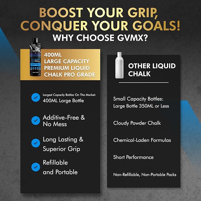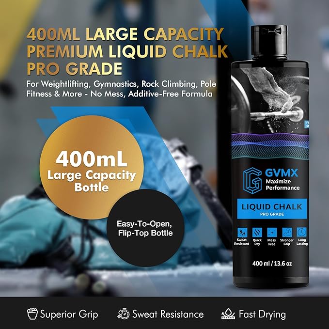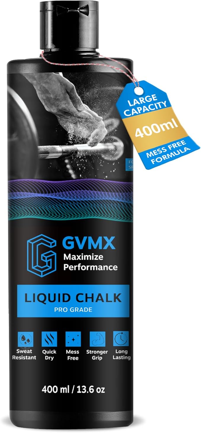 50ML/100ML/400ML Superior Grip Premium Liquid Chalk. Long Lasting Mess-Free Gym Chalk for Weightlifting, Gymnastics, Climbing. Fast Drying Refillable Gym Accessories. Package May Vary.