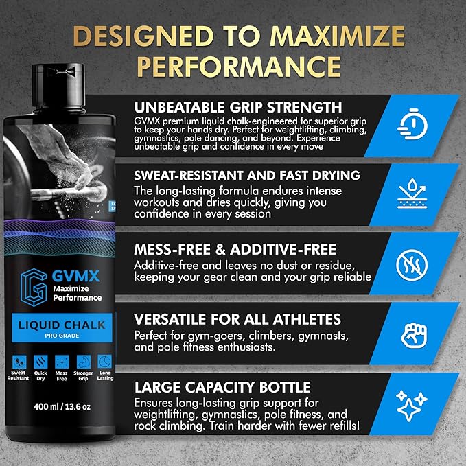 • ๐—”๐—ฑ๐—ฑ๐—ถ๐˜๐—ถ๐˜ƒ๐—ฒ-๐—™๐—ฟ๐—ฒ๐—ฒ ๐˜„๐—ถ๐˜๐—ต ๐—ก๐—ผ ๐—ฅ๐—ฒ๐˜€๐—ถ๐—ฑ๐˜‚๐—ฒ: GVMX hand chalk is no ordinary chalk powder. Nor is our workout chalk anything like other brands of liquid chalk gym enthusiasts use. Besides being additive-free, it leaves no chalk marks on your phone or sport equipment.
