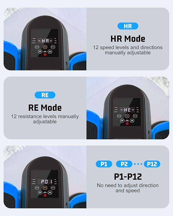 - 【Responsive Remote Control, Easy-to-use】This exercise equipment comes with an easy-to-use remote control, allowing you to adjust settings effortlessly without interrupting your workout. Switch between modes, adjust speed, or change resistance levels from the comfort of your seat. Perfect for multitaskers