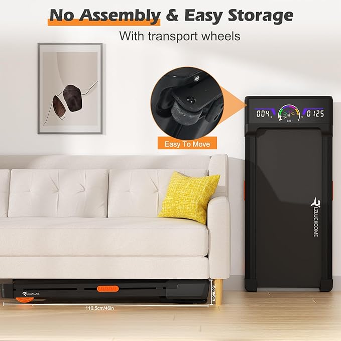 - Easy to Move and No installation: Auto incline walking pad requires no installation and ready to use right out of the box. The compact treadmills for home with incline feature 6 inches thick, the front wheels allow you to easy to move and slides under couch, sofa, bed, stand against the wall when not in use.