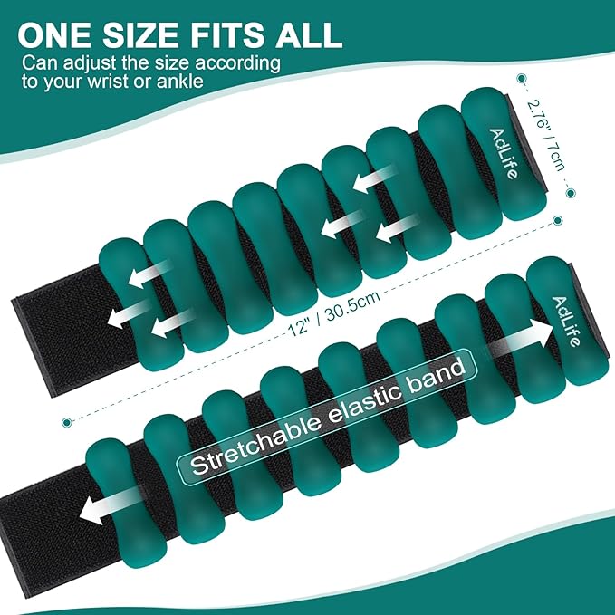 - [Durable & Comfortable Material] ADLIFE adjustable ankle weights are made from skin-friendly silicone, with durable steel wrapped in a soft silicone layer. These weighted ankle & wrist weights are rust-resistant, waterproof, and easy to clean. The textured inner design prevents sweat or water from sticking to the skin, ensuring the ankle weights remain comfortable, breathable, and ideal for both land and water workouts. This wearable weights set helps men, women, and kids build strength while enjoying a hassle-free fitness experience.